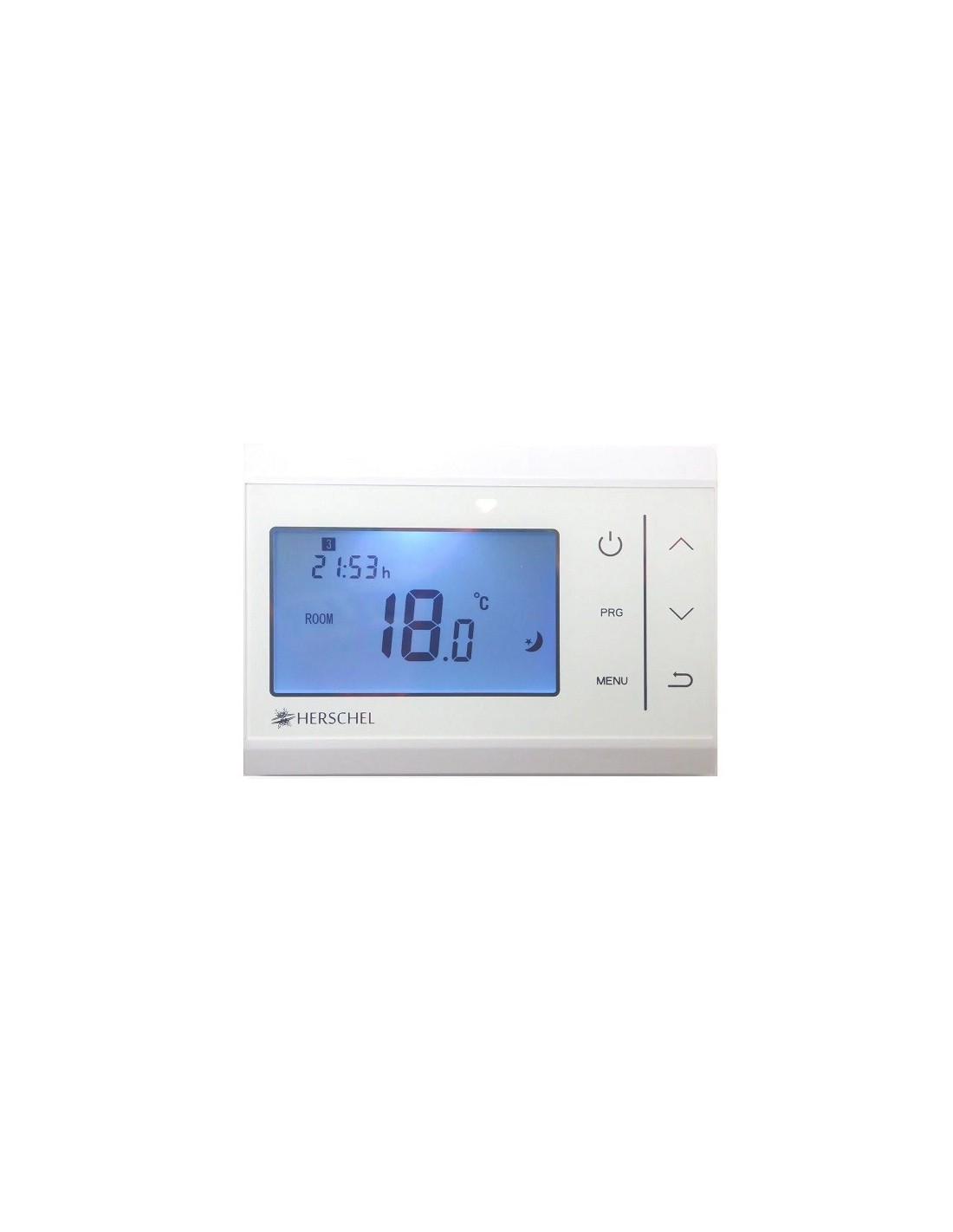 Sistema di controllo a termostato Herschel IQ T2 con ricevitore R2 da 10 A per pannelli Inspire e pannelli da soffitto Select. Connessione wireless. Numerose funzioni di programmazione in linea con lo standard Ecodesign: 5+1+1 programmi settimanali con 4 tempificazioni e 3 modalità: comfort, economy, away e con funzione "open window" (finestra aperta). Possibilità di controllo con app SmartLife.