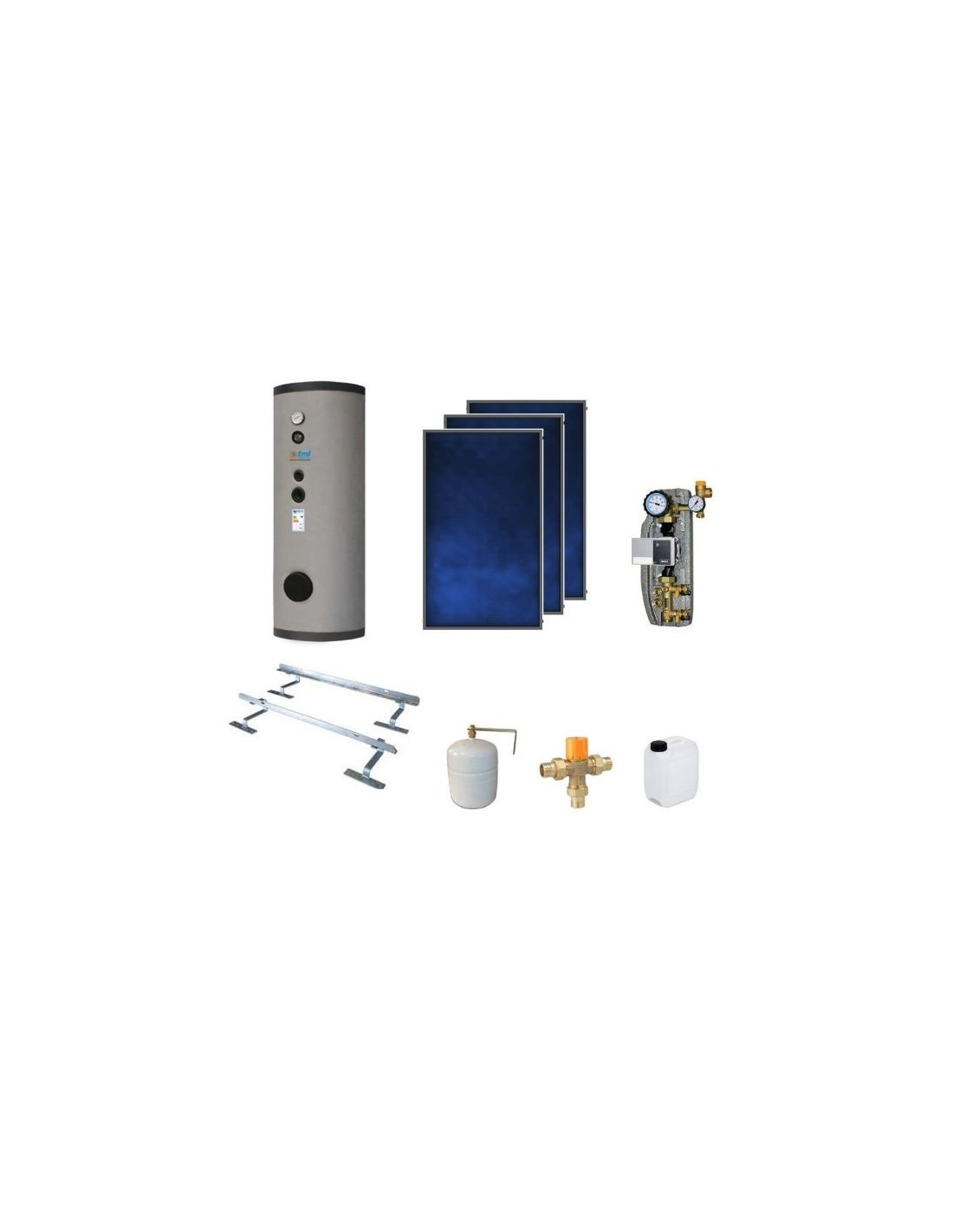 BSKS303CS1E Kit completo a circolazione forzata 3 collettori PBS250 Elios + 1 bollitore 300lt.  a un serpentino fisso + 1 modulo CS1 + ELY + accessori