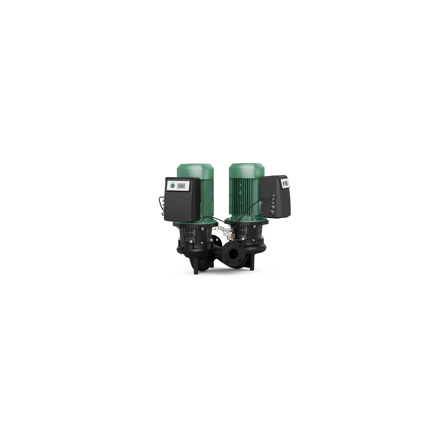 Wilo DL-E 65/200-22/2 Pompa gemellare a motore ventilato ad alta efficienza ''IE4'', tipo in-line regolata elettronicamente, completa di trasduttore di pressione differenziale. Alim. 3~400 V/50 Hz. Bocche flangiate DN 65 PN 16. Interasse 475 mm