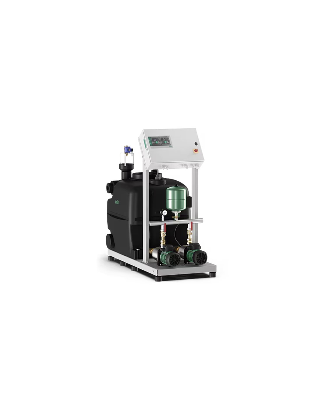 Il Wilo RainSystem AF 400-2 Medana L405/EC (Codice articolo 4254798) è Sistema di recupero acqua piovana con serbatoio da 400 lt e due pompe autodescanti multistadio in acciaio inossidabile e composito. Alim. 3~400 V/50Hz. Collettore mandata filettato Rp 1''1/2. Pressione nom. PN 10. Incl. quadro di comando EC-Rain.