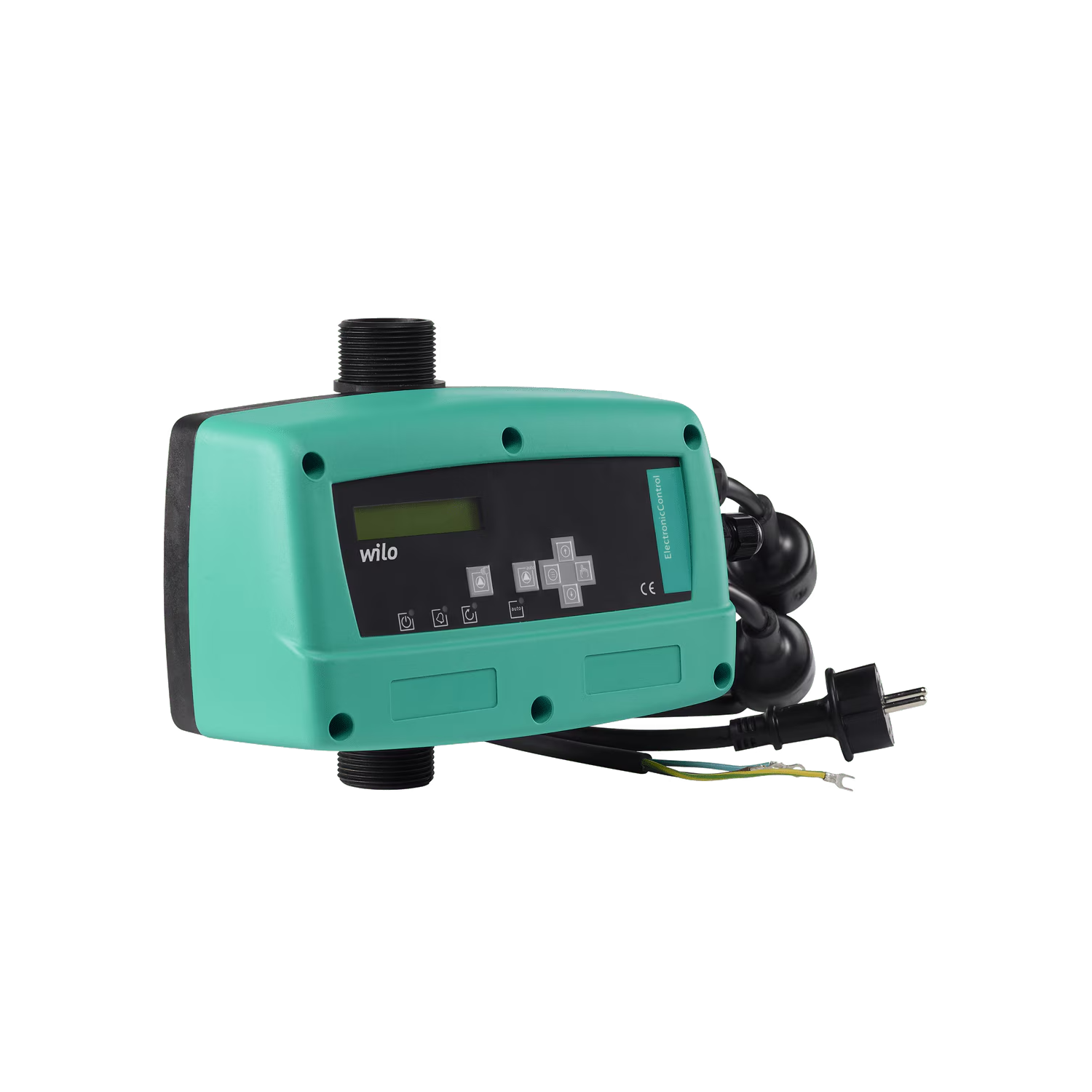 Wilo MM5 Elektronische Steuereinheit mit Frequenzumrichter zur Drehzahlregelung von Reinwasserpumpen. Netzspannung 1~230 V, 50/60 Hz, max. Nennstrom 5 A, zur Ansteuerung einer Pumpe mit 1~230 V Versorgung.