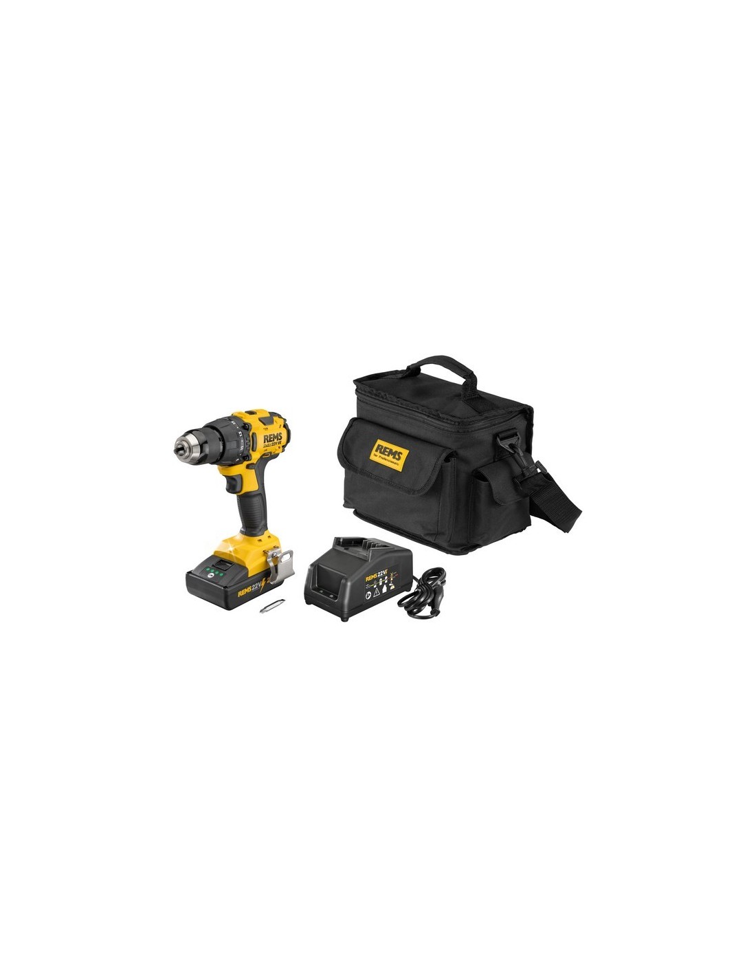 REMS Helix 22V VE Set. Trapano avvitatore a batteria con elettronica Vario (VE) per la perforazione di acciaio, pietra fino a Ø 13 mm, legno fino a Ø 32 mm e altri materiali, nonché per l'inserimento/svitamento di viti fino a 8 mm.