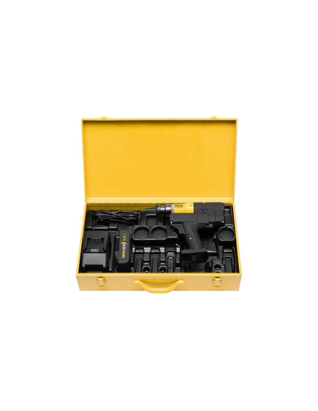 REMS Akku-Ex-Press P-CEF 22 V ACC Basic-Pack. Allargatubi a batteria per l'espansione rapida di tubi in plastica con diametro da 16 a 40 mm. Azionamento elettroidraulico con ritorno automatico, dotato di un potente motore a batteria da 21,6 V, 380 W, robusto cambio planetario, pompa a pistone eccentrico e sistema idraulico ad alte prestazioni. Interruttore di sicurezza. Lampada da lavoro a LED integrata. Batteria Li-Ion da 21,6 V, 1,5 Ah, caricabatterie rapido Li-Ion da 230 V, 50 - 60 Hz, 70 W. Dispositivo di espansione P-CEF compatibile con teste di espansione REMS P-CEF e altre marche. Senza teste di espansione. In robusta cassetta d’acciaio.