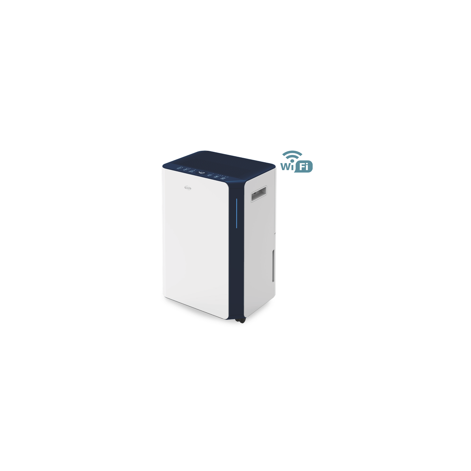 Minimal and quiet, it effectively improves indoor air thanks to its dual filtration system. Its matt, pure white finish, embellished with blue details, make it a fixture that is both cheerful and pleasant in any environment. A thin LED immersed in the blue corner strip, with iridescent coloring, intelligently signals the humidity level at all times. Most convenient for drying laundry, thanks to the dedicated function.