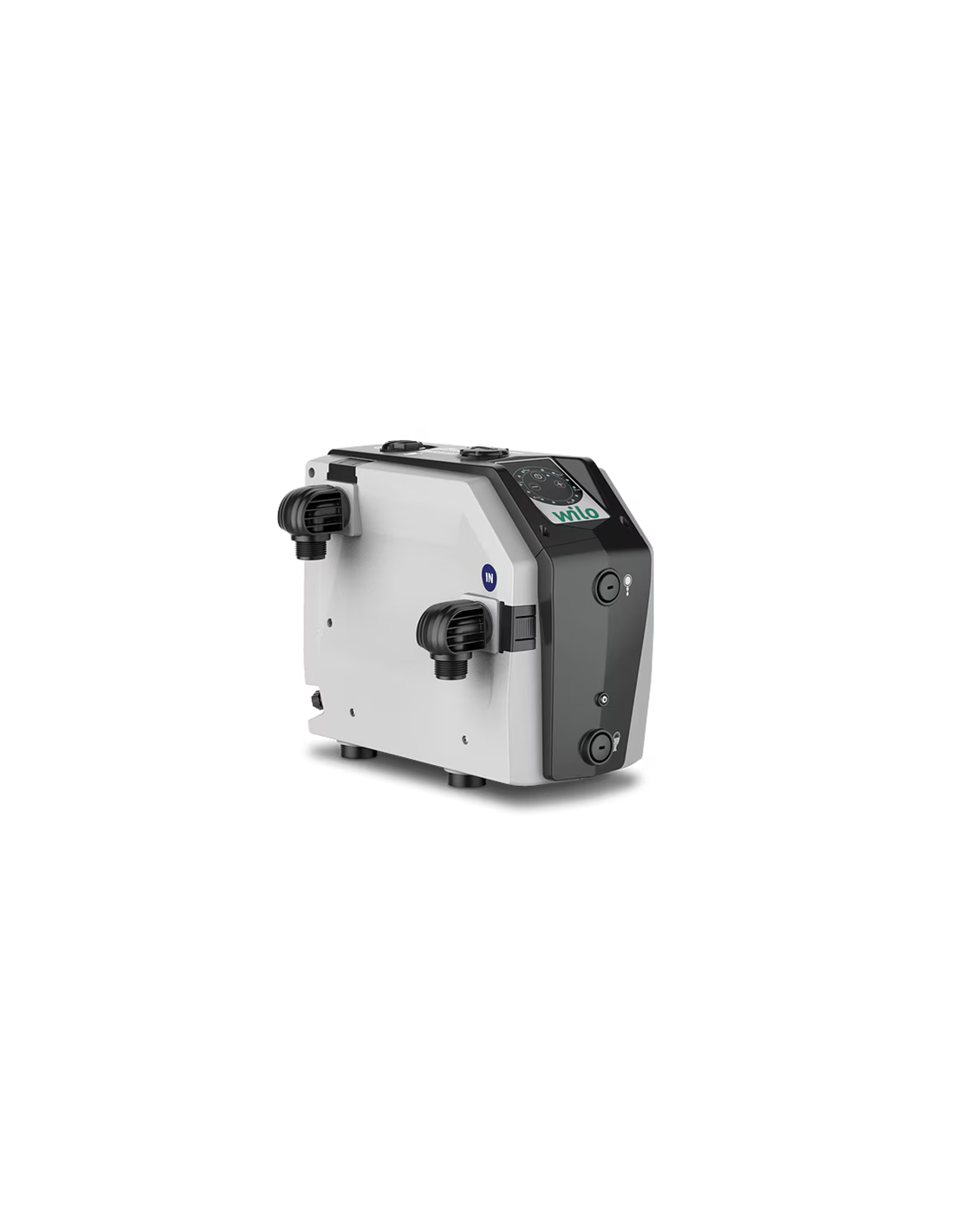 Wilo Isar BOOST5-E-3-2G One-piece water pressurization system with inverter, high-efficiency multistage pump, diaphragm vessel, pressure and flow sensors, and check valve. Self-priming or normally suction operation
