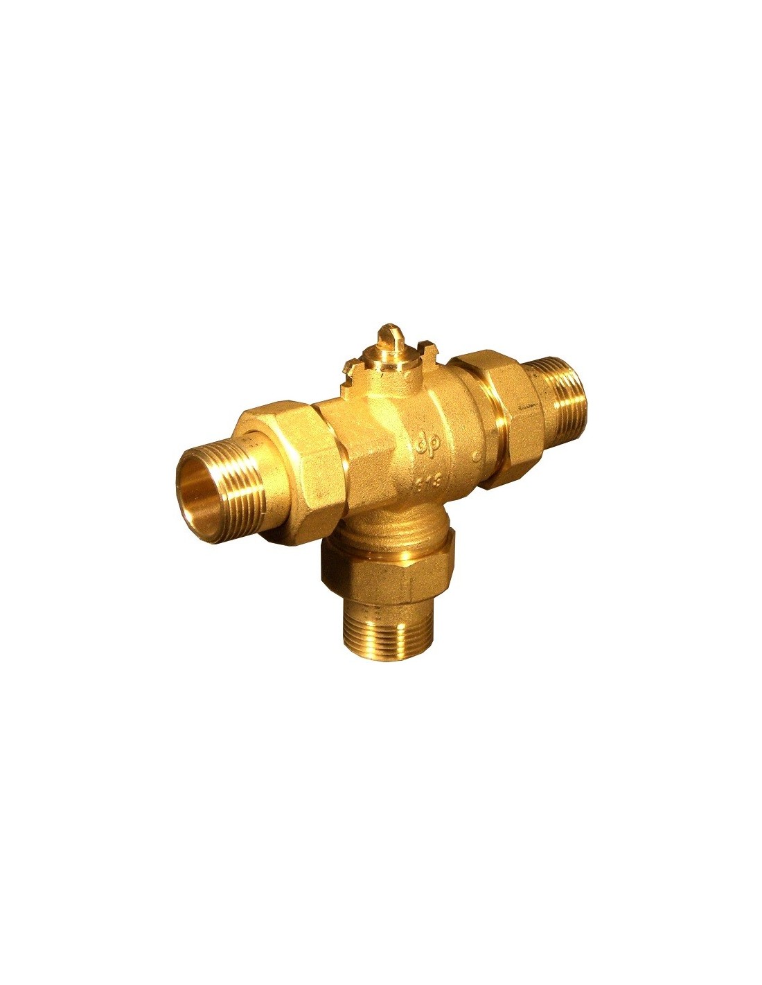 Cuerpo de válvula de bola de 3 vías D. Conexiones de unión de 3/4" tipo desviador de 3 orificios