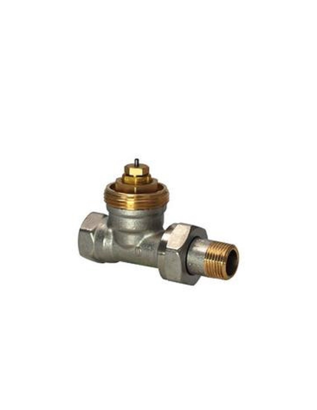 Vanne thermostatique de radiateur N/F droite DN 20 PN 10 pour systèmes de chauffage pour réguler, contrôler et limiter la température ambiante en liaison avec un régulateur thermostatique ou un actionneur électrique. Liquide recommandé : eau avec max. 40 % de glycol. Conforme à la norme EN 215-1. Kvs réglable 0,31 ... 1,41 m3/h. Toutes les vannes sont fournies avec un couvercle de protection qui permet des réglages manuels. Le couvercle ne doit être utilisé comme protecteur que jusqu’à ce que le système soit terminé, puis il sera remplacé par des servocommandes appropriées. Unité de commande remplaçable sans qu’il soit nécessaire de vider le système. Les vannes peuvent être utilisées avec les servocommandes des séries suivantes : RTN.., SSA.., STA.. Course = >1,2 mm Dp max = 60 kPa DPv100 = 5...20 kPa Température du fluide = 1...120 °C Pression de service = 1000 kPa Corps de vanne = Laiton nickelé