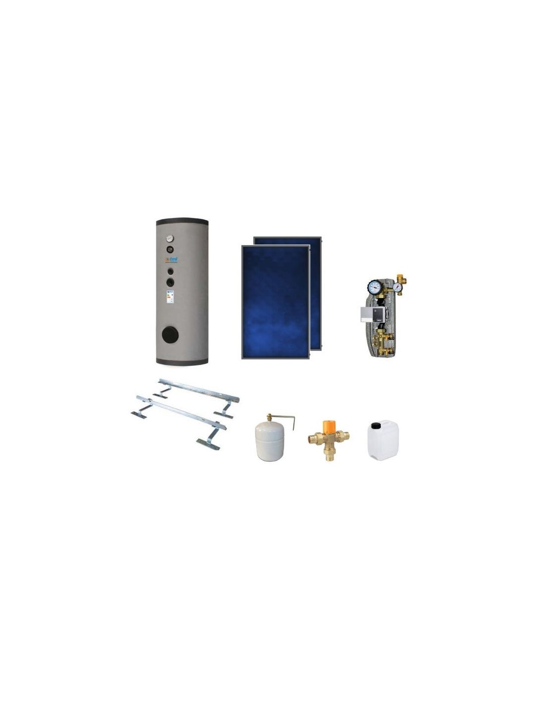 BSKS302CS1E Kit complet à circulation forcée 2 collecteurs PBS250 Elios + 1 chaudière 300lt. avec une bobine fixe + 1 module CS1 + ELY + accessoires