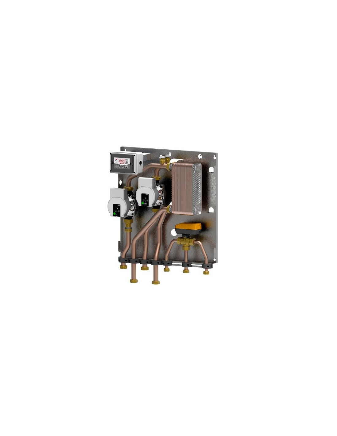 BOX FIRE BF2 est un module pré-assemblé qui vous permet de chauffer des pièces où le système de chauffage est normalement alimenté par une chaudière à cuve fermée, grâce à l’utilisation d’eau chaude produite par une source de chaleur à combustible solide à cuve ouverte (cheminée, chaudière ou thermo-poêle sans circulateur intégré). Il permet le fonctionnement séparé du circuit primaire (chaudière cheminée) et du circuit secondaire (chaudière) comme l’exige la réglementation en vigueur, avec un excellent transfert de chaleur au moyen d’un échangeur de chaleur à 30 ou 40 plaques. Le modèle BF2 gère également l’eau chaude sanitaire, en détournant l’eau du réseau du circuit de la chaudière vers celui de la chaudière avec cheminée - équipée d’un serpentin - lorsque cette dernière est à température.