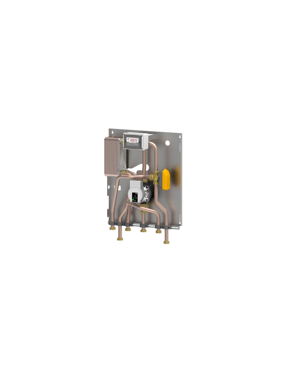 BOX FIRE BF7 S est un module thermique pré-assemblé qui vous permet de chauffer des pièces où le système de chauffage est normalement alimenté par une chaudière à cuve fermée, grâce à l’utilisation d’eau chaude produite par une source de chaleur à combustible solide à cuve ouverte (chaudière à cheminée ou poêle-chaudière avec circulateur intégré). Il permet le fonctionnement séparé du circuit primaire (chaudière cheminée) et du circuit secondaire (chaudière) comme l’exigent les réglementations techniques en vigueur, avec un excellent transfert de chaleur au moyen d’un échangeur de chaleur à 30 ou 40 plaques. De plus, le module BF7 S gère la production d’Eau Chaude Sanitaire au moyen d’un ballon de stockage avec une fonction prioritaire sur le chauffage actionné par la vanne de dérivation à 3 voies.