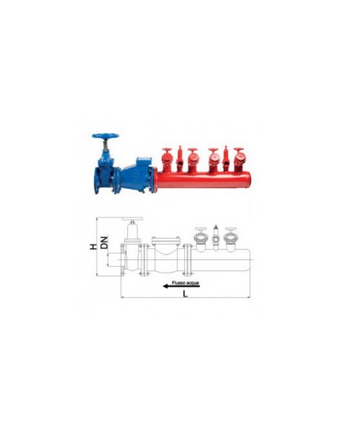 Bocciolone 205/c Unité de raccordement de la pompe de refoulement horizontale + 4 bouches d’incendie DN150