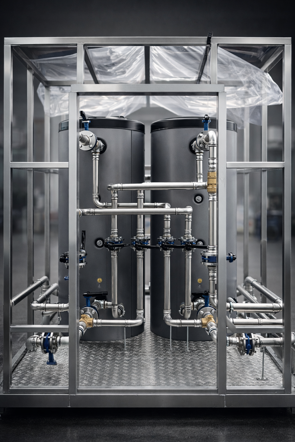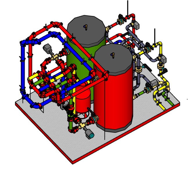 Gli skid idraulici prefabbricati permettono di realizzare moduli impiantistici compatti, collaudati e facilmente trasportabili.